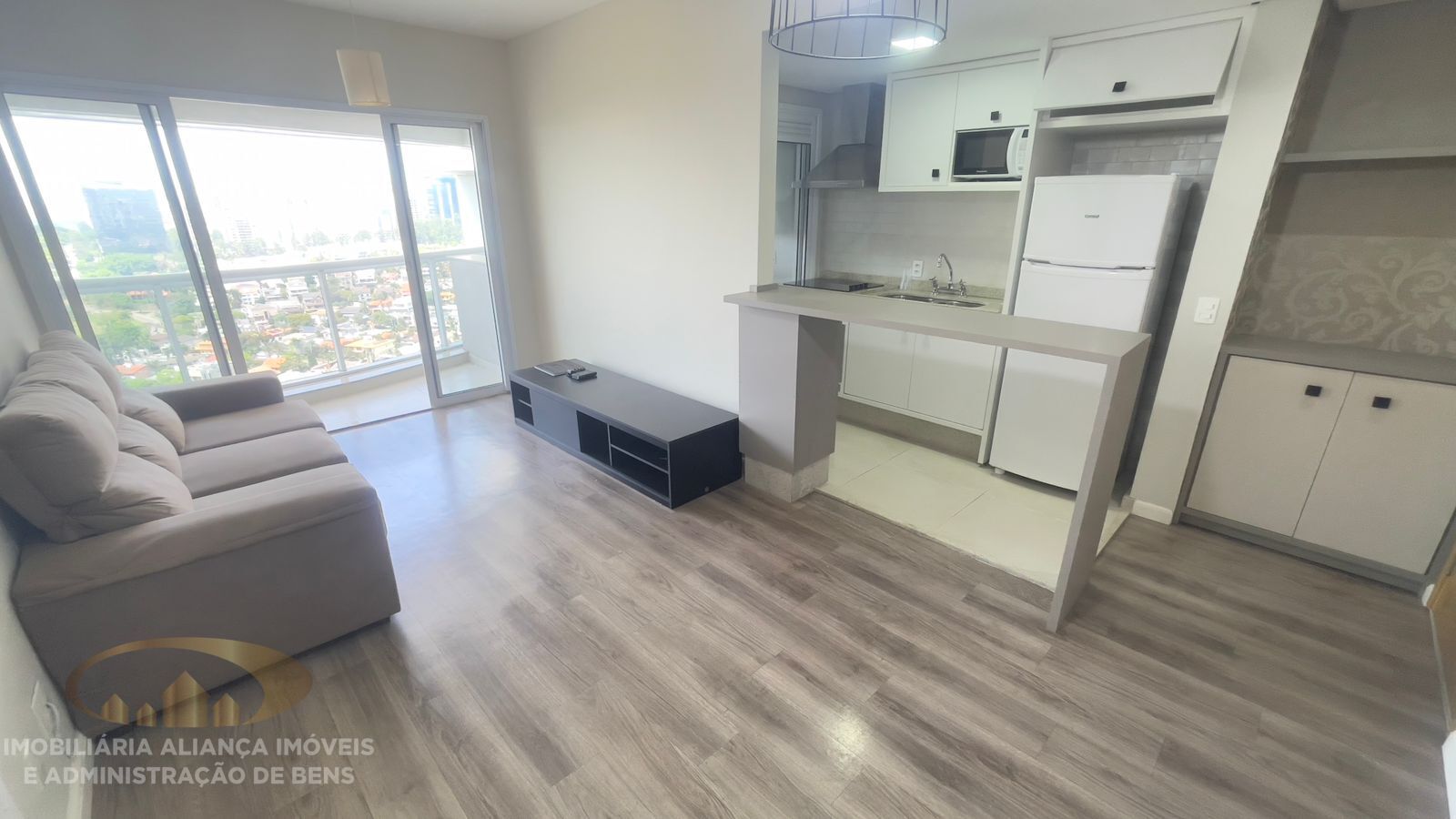 Apartamento muito bem acabado e pronto para morar com eletrodomesticos e móveis nóvos. 1 dormitório, 1 banheiro, com varanda e uma vista de tirar o folego.